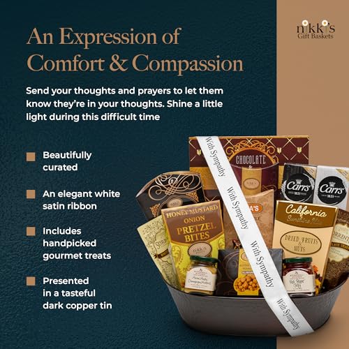 Sympathy Gift Basket | Sympathy Gifts for Loss of Loved One | Gourmet Food Gift Basket | Elegantly-Arranged Bereavement Gift Baskets | Condolences Gift Basket For Loss | Nikki’s Gift Baskets