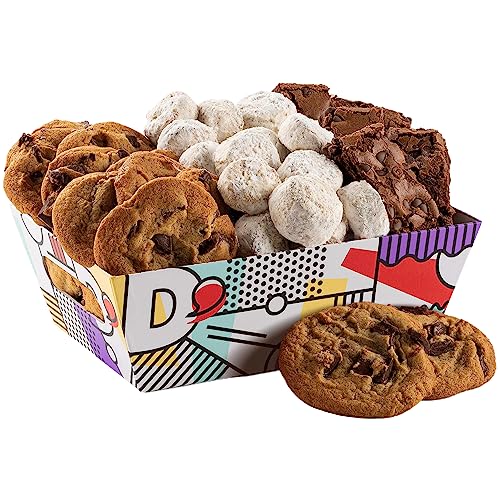 Gourmet Cookies & Brownies Treat Box – Freshly Baked Goods In Signature Gift Basket – Includes Chocolate Chip Cookies, Butter Pecan Meltaways & Dark Chocolate Brownies – Delicious Food Gift Idea