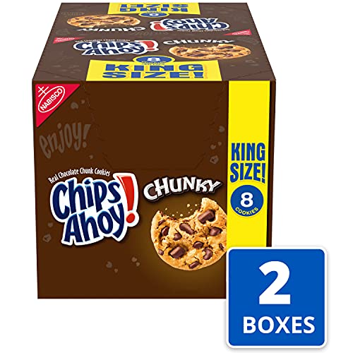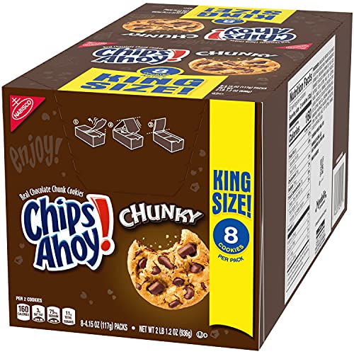 This bulk package contains 16 individually wrapped 4.15 oz. king-size snack packs of CHIPS AHOY! Chunky Chocolate Chip Cookies (8 cookies per pack, 2 packs per box, 2 boxes total)