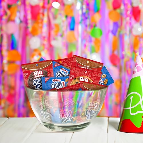 This. Is. Big. (and mini!) – This CHIPS AHOY! cookie variety pack includes twenty total cookie snacks packs; 5 CHIPS AHOY! Big Chewy Chocolate Chip Cookies and 5 CHIPS AHOY! Big Chewy Chocolatey Brownie Chocolate Chip Cookies and 10 CHIPS AHOY! Mini Original Chocolate Chip Cookies. Packed with flavor and convenience, this bulk cookie snack packs have an assortment of flavors sure to please everyone in the house or administrative center. Snacking just got more exciting with delightfully decadent CHIPS AHOY! Big Chewy Chocolate Chip Cookies. Including original Chewy Chocolate Chip and Chocolatey Brownie Chocolate Chip, these soft cookies are baked to perfection for maximum chewy goodness. CHIPS AHOY! Big Chewy Cookies are more than three times larger than regular Chewy CHIPS AHOY! soft baked cookies for three times more yum! Sure to leave you satisfied and perfectly sized for sharing, these certified kosher snack cookies are made with bigger chocolatey chips (and with a special blend of cocoa for Chocolatey Brownie). These for my part wrapped single-cookie chewy cookie snack packs are ideal shareable snacks. CHIPS AHOY! Mini Chocolate Chip Cookies are the CHIPS AHOY! cookies you realize and love, bite-sized and baked to have the easiest amount of crunch. Mini chocolate chip cookies are great for adding to desserts or the use of as ice cream toppers. CHIPS AHOY! cookie snack packs are convenient road commute snacks, school snacks, and administrative center snacks, perfect for throwing in lunchboxes for special Clutch and go treats. These bulk for my part wrapped cookie snack packs make great stocking stuffers, Easter basket fillers, Halloween treats, Valentines, or birthday party favors.