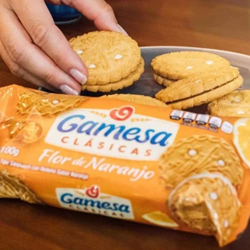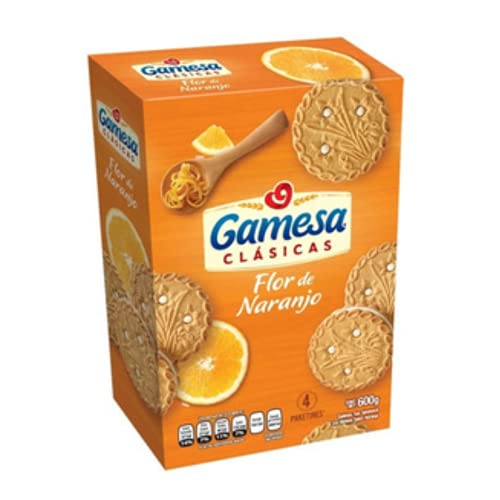 Specification: Flor de naranjo by Gamesa. 600 grams contained in 24 Delicious orange flavored cookies. You will love its creamy filling, always fresh brought in small quantities from Mexico to your table to ensure freshness and expiration, The favorites of the whole family