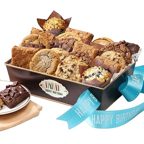 Happy Birthday Gift Basket Filled with Indiviually Wrapped Fresh Brownies and Cookies Assorted Toppings and Flavors Perfect for Her Him Friends Associates