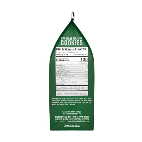 Specification: Tate’s Bake Shop Oatmeal Raisin Cookies, 7 Oz (Pack of 6)