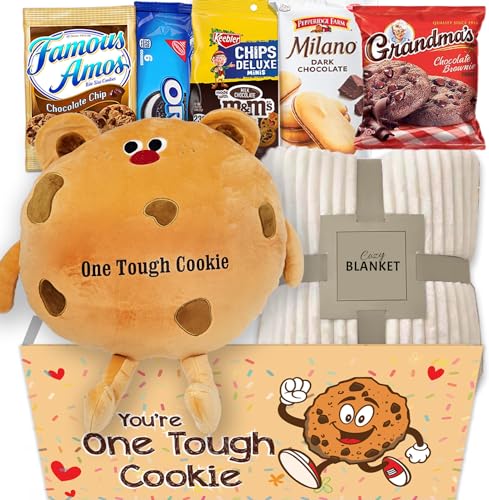Get well Soon gift for Kids, Hospital recovery One Tough Cookie Gift Basket w/Blanket, Care package Snack Box w/Cookie & Pillow Feel better son for child or teenage, unique gift box