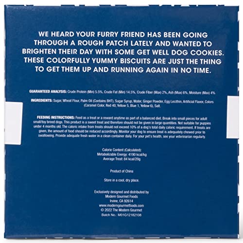 DOG TREAT GIFT has 8 colorful & hand decorated get well themed crunchy dog biscuits