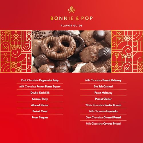 Chocolate Gift Basket- Gourmet Chocolate Snack Variety Present in Keepsake Tray- Includes Belgium Pretzels, Peppermint Patties, Sea Salt Caramels, Chocolate Espresso Beans- Bonnie and Pop