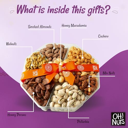 Nuts Gift Basket 2.2 LB | Large 7 Variety Holiday Freshly Roasted Party Tray | Birthday, Anniversary, Corporate Tray | Premium Gift Basket Idea for Men & Women by Oh Nuts