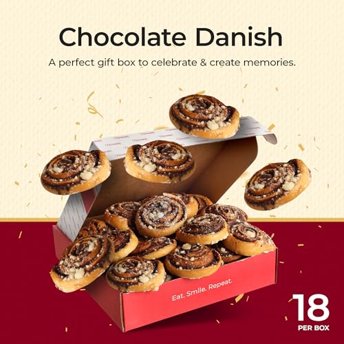 Chocolate Danish Gift Box | Nut & Dairy Free Baked Goods | Gourmet Food Gifts for Adults | OU Kosher Certified | Bakery & Dessert Gifts | 18-Pack | Reisman’s Bakery