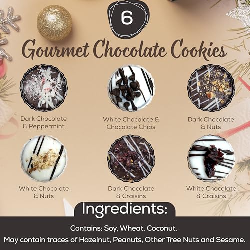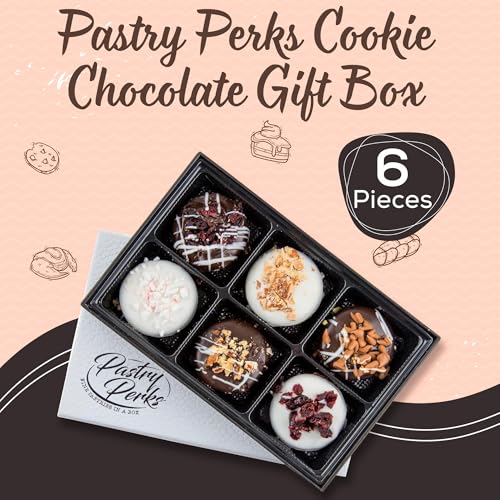 Pastry Perks 6 Gourmet Chocolate-Covered Cookies, Gift Basket – Holiday Gift Box for Men, Women, and Grandma – Birthday Treats & Food Delivery Gift Ideas