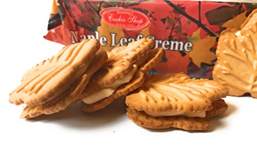 This is an 11.4 ounce package of Manning’s Cookie Shop Maple Leaf Creme Cookies.