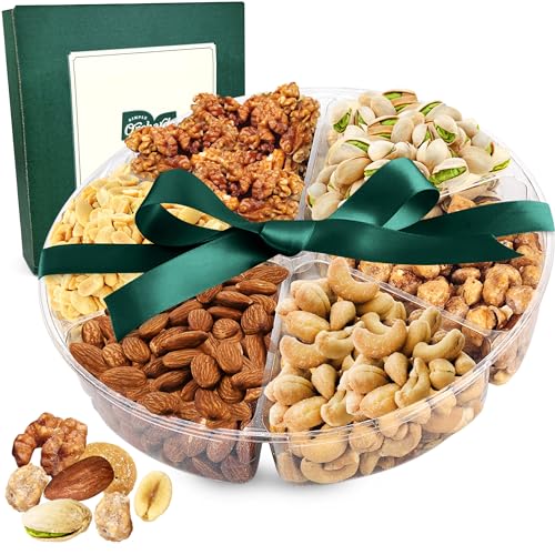 Holiday Nuts Gift Basket – Nuts Gift Basket Platter With a Variety of Freshly Roasted Nuts – Beautifully Packaged Gift for Birthday, Sympathy Valentine’s Day. (6 Sectional Ultimate)