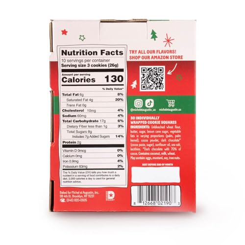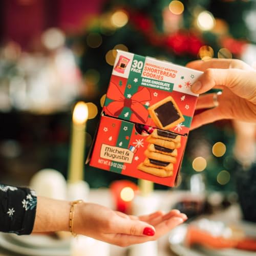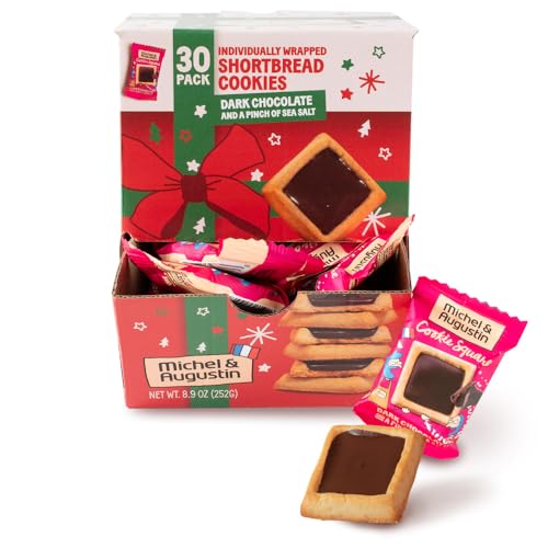 Michel et Augustin Dark Chocolate and Sea Salt Butter Cookie Squares, Holidays Christmas Cookies Gift Box, French Shortbread European Cookies, Individually Wrapped, Stocking Stuffer Box, 30 Cookies