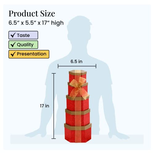Broadway Basketeers Chocolate and Sweets Christmas Ruby Red Gift Basket Holiday Tower, Anniversary, Birthday, Thinking of You for Women, Mom, Step-Mother, Wife, Girlfriend, Her or Him