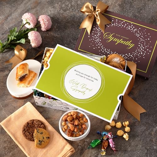 Broadway Basketeers Sympathy Gift Basket for Condolences, Delivery with Prime Gourmet Treats Gift Box, Individually Wrapped Desserts & Snacks Care Package for Men, Women, Grief, Memorial, Remembrance