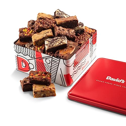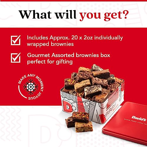 David’s Cookies Assorted Brownies Gift Tin – 20 Slices of Individually Wrapped Gourmet Brownies – Delicious Variety of Flavors, Fresh Baked Snacks – Ideal Brownies Gift Basket For Special Occasions