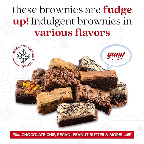 THESE BROWNIES ARE FUDGED UP! – Brownie Gift Tin Packs 20 Rich 2oz. Fudgy Brownie Slices; Various Flavors: Chocolate Chip, Pecan, Peanut Butter & More
