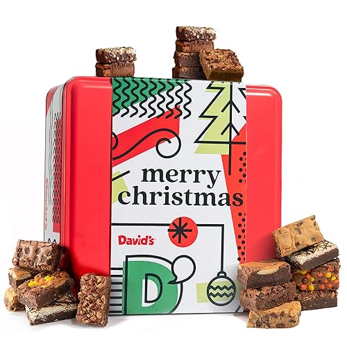 David’s Cookies Assorted Brownies in Merry Christmas Tin | Delicious Fresh Baked Gourmet Chocolate Fudge Slices Comes in Mery Christmas Themed Tin Box Ideal for Gifts 2lbs