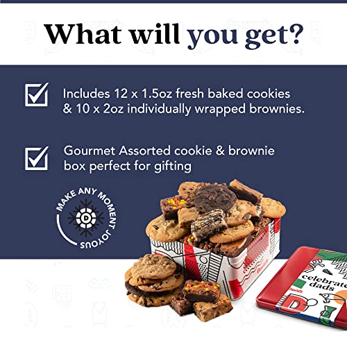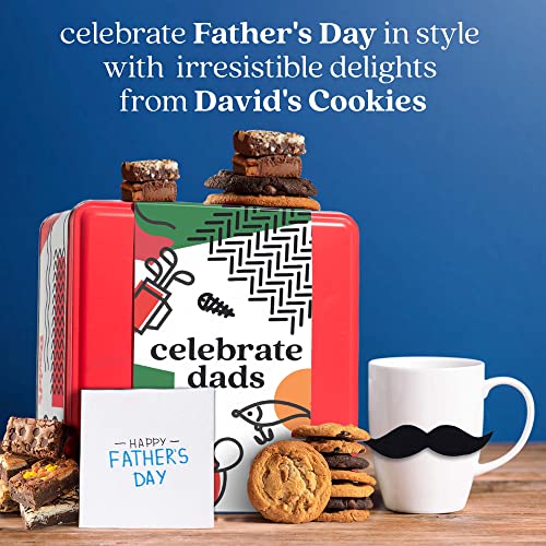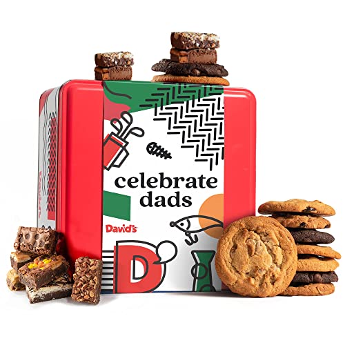 David’s Cookies Assorted Cookies & Brownies – Fresh Baked Signature Treats in Celebrate Dads Tin – Delicious Gourmet Food Gift Basket for Dad, Husband, or Him – Thoughtful Treat for Special Occasions