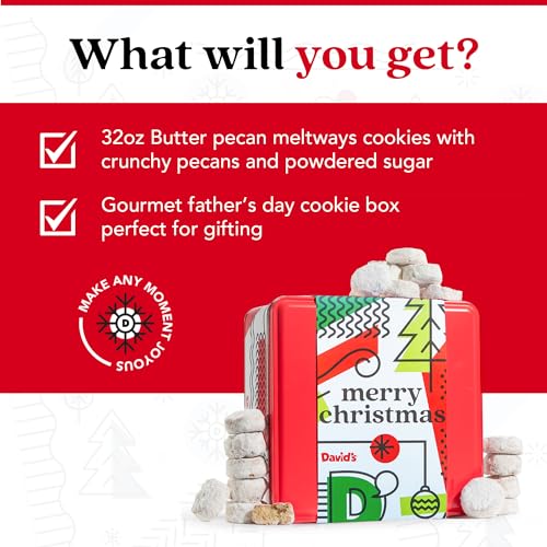 David’s Cookies Butter Pecan Meltaways Flavored Cookies With Crunchy Pecans In A Merry Christmas Themed Tin Gift Box – Deliciously Soft and Gourmet Melt In Your Mouth Flavorful Cookies In A Beautiful Christmas Gift Tin- 2Lbs