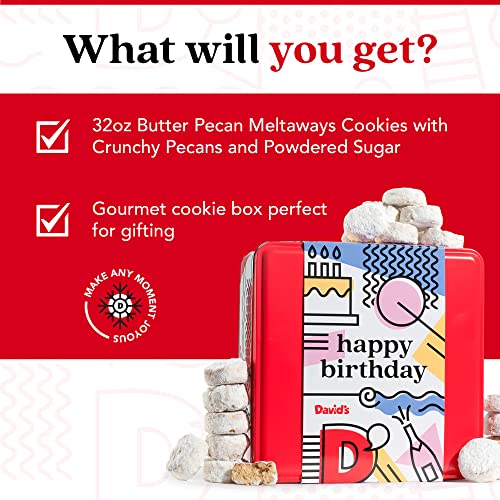 David’s Cookies Happy Birthday Gift for Everyone – Butter Pecan Meltaways Cookies with Crunchy Pecans and Powdered Sugar – Premium Fresh Ingredients – Comes with a Lovely Tin Box – 2 Lbs