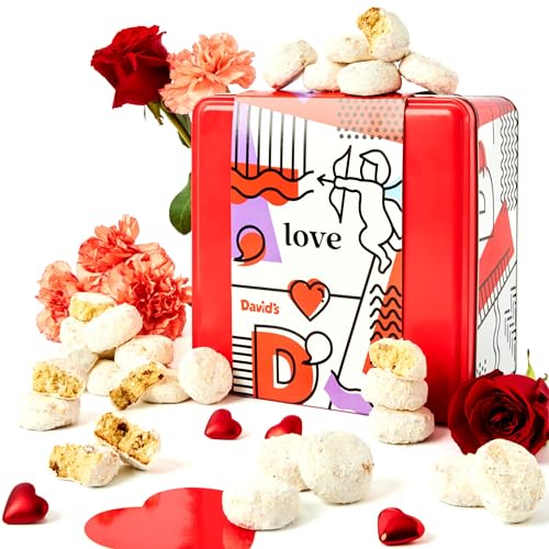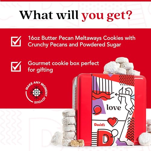 David’s Cookies Ideal Valentines Day Gift for Everyone – 16Oz Butter Pecan Meltaways Cookies with Crunchy Pecans and Powdered Sugar – Premium Fresh Ingredients – Comes with a Lovely Tin Box