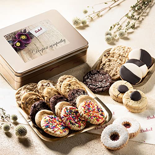 EXPRESS YOUR SYMPATHY THE SWEETEST WAY POSSIBLE: Each gift box contains various tastes, offering you heaven in each bite. Gift features an assortment of 25 Cookies- flavors include Black and White, Linzer, Sprinkle, Chinese, Crinkle, Chocolate Chip, Cranberry White Chip, Oatmeal Raisin, and Peanut Butter.