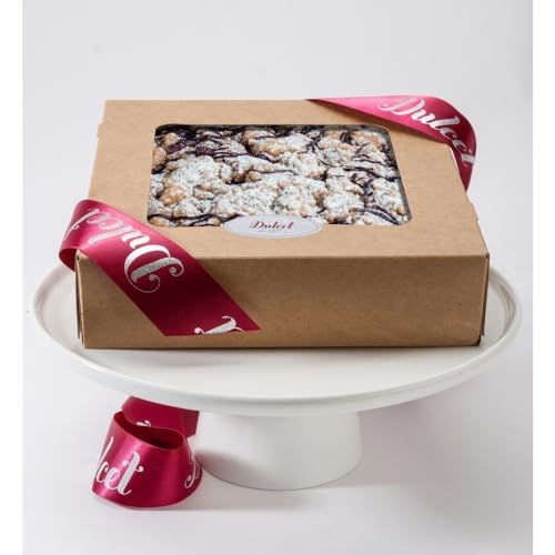 Gourmet Chocolate Crumb Cake Gift Box By Dulcet Gift Baskets- Freshly Baked Handmade Moist Chocolate Crumb Cake For House Warming, Office Parties, Gifts & More – Reusable Maroon Gift Box – 2 8×8 Cakes