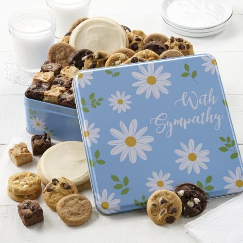 Mrs. Fields – With Sympathy Cookie and Brownie Combo Gift Tin, Assorted with 24 Nibblers Bite-Sized Cookies, 18 Brownie Bites, and 2 Frosted Round Cookies (44 count)