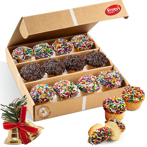 Gourmet Cookie Gift Box | 12 Individually Wrapped Sprinkle Cupcakes | Valentine Cookie Basket | Christmas, New Year’s & Birthdays | Men, Women & Kids | Stern’s Bakery (Sprinkle Cupcake Gift Pack)