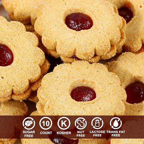 Sugar Free Cookies by Stern’s Bakery | [10 Count] Strawberry Filled Linzer Tart Cookies | Sugar Free Cookies and Snacks for Diabetics | Dietetic Shortbread Cookies | Low Carb Snacks for Adults